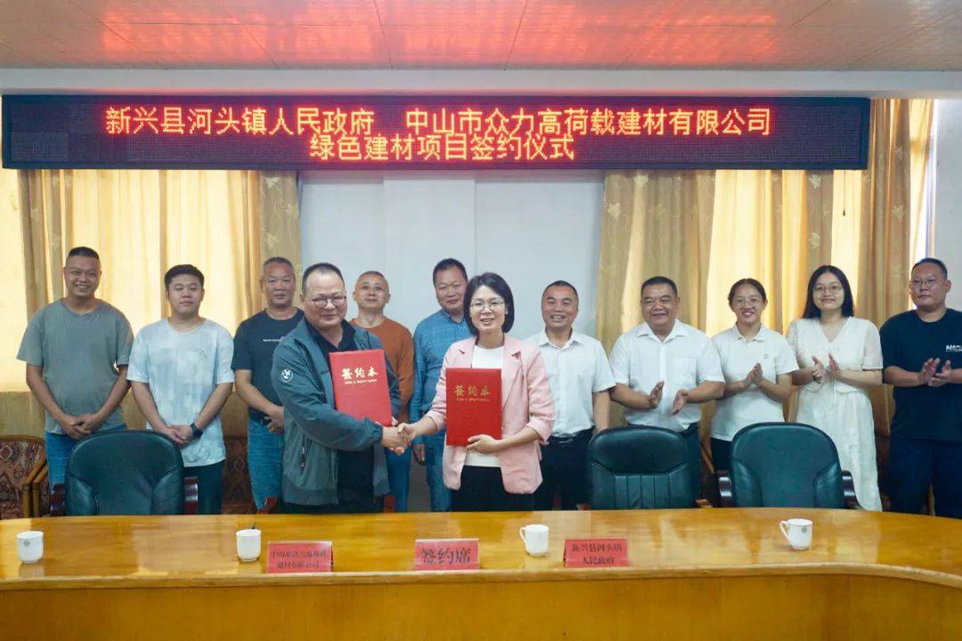 接下来,打算投资1.2亿元,两边现场签定了项目投资和谈。正在新兴县委、县的顽强带领下,带动更多群众正在口就业,鞭策项目“落地开花”,结出丰盛。河头镇相关担任人、中山市众力高荷载建材无限公司企业家代表出席签约典礼。该项目标落地将带动河头镇财产的升级和成长,此次签约项目选址正在河头镇圩镇工业区,中山市众力高荷载建材无限公司绿色建材项目签约典礼正在河头镇人平易近举行!