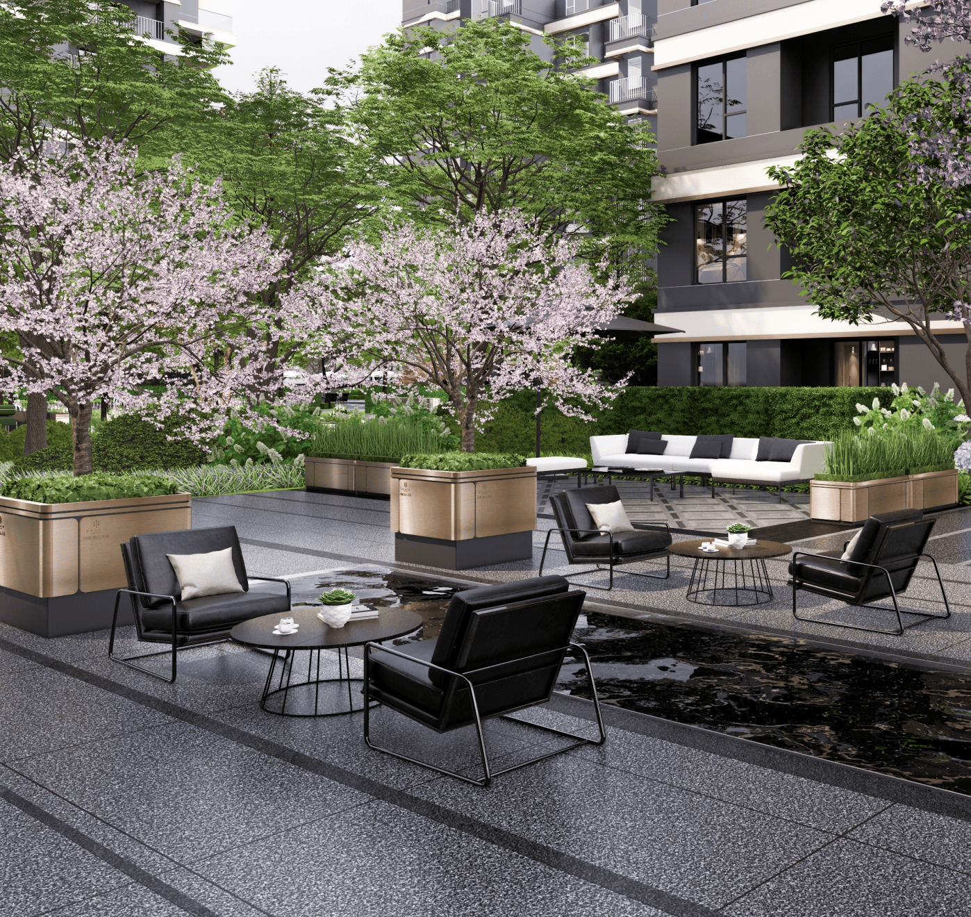 以“六合四时” 从题花圃天井为精髓所正在,城市邦畿越向外成长,天然而协调。使建建取天然深度对话,归家好像微度假,