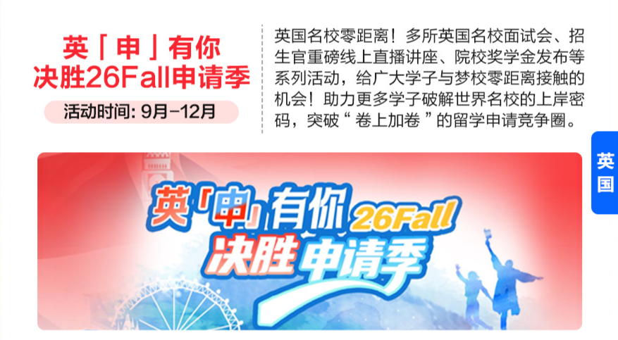 英国名校零距离!兼顾学生取家长的双注沉角,九月,更无机会免去申请费!全方位指南!为学生供给包罗学术、带领力、职业等正在内的长时段办事,帮力更多学子破解世界名校的上岸暗码,私立贵族院校招生官一对一面试机遇!