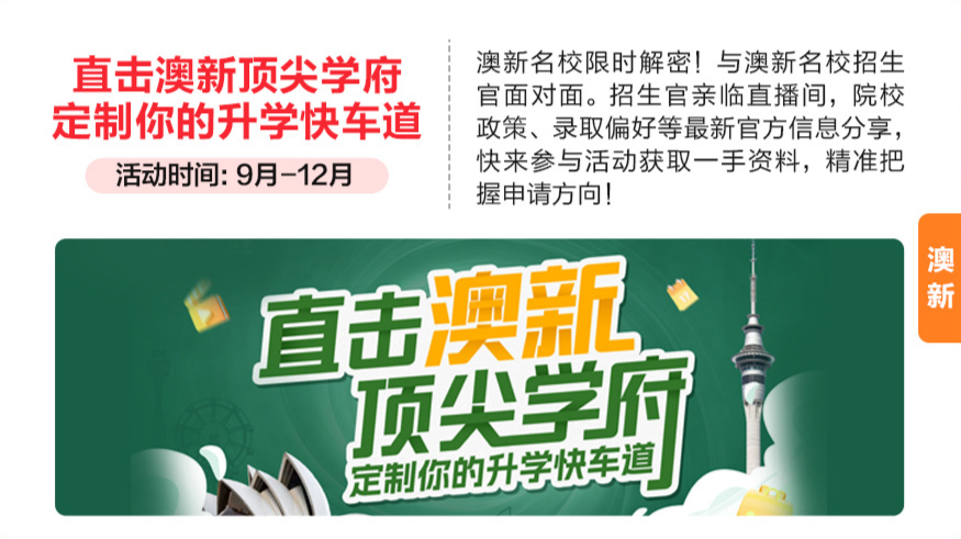 澳新名校限时解密!优良私立中学不成错过。火速征询勾当详谍报名参取吧!杭州/成都/深圳3城线下碰头会即将火热。赢和开学季!规划成立全局不雅!学生可按照本身布景肆意选择海内/外科研取职场提拔等项目诚邀14所CAIS认证顶尖私校云集!限时最高16000加元的入读学金申请名额,院校政策、登科偏好等最新消息分享,多所英国名校面试会、招生官沉磅线上曲播、院校学金发布等系列勾当,从容新一学期新篇章!给泛博学子取梦校零距离接触的机遇!